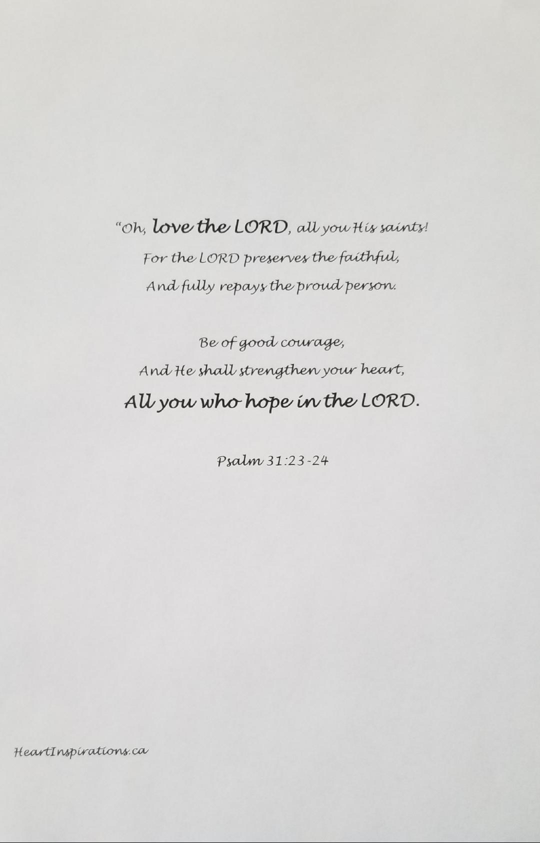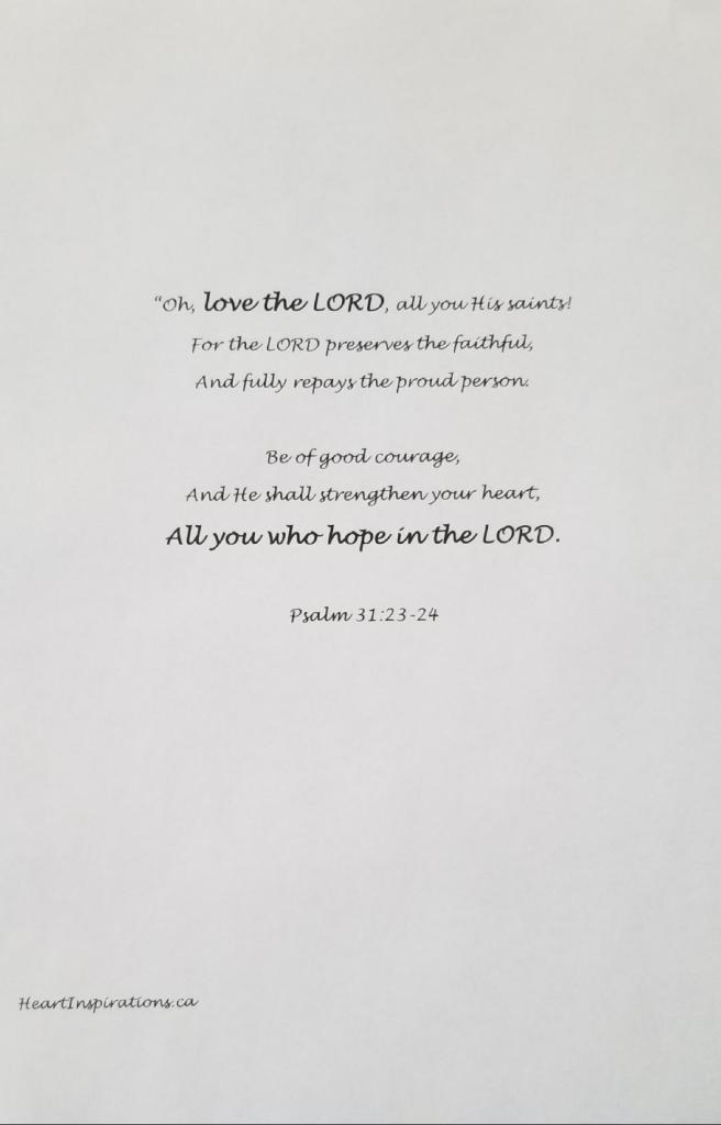 Please notice these HOPE-filled words from Psalm 31:23-24: