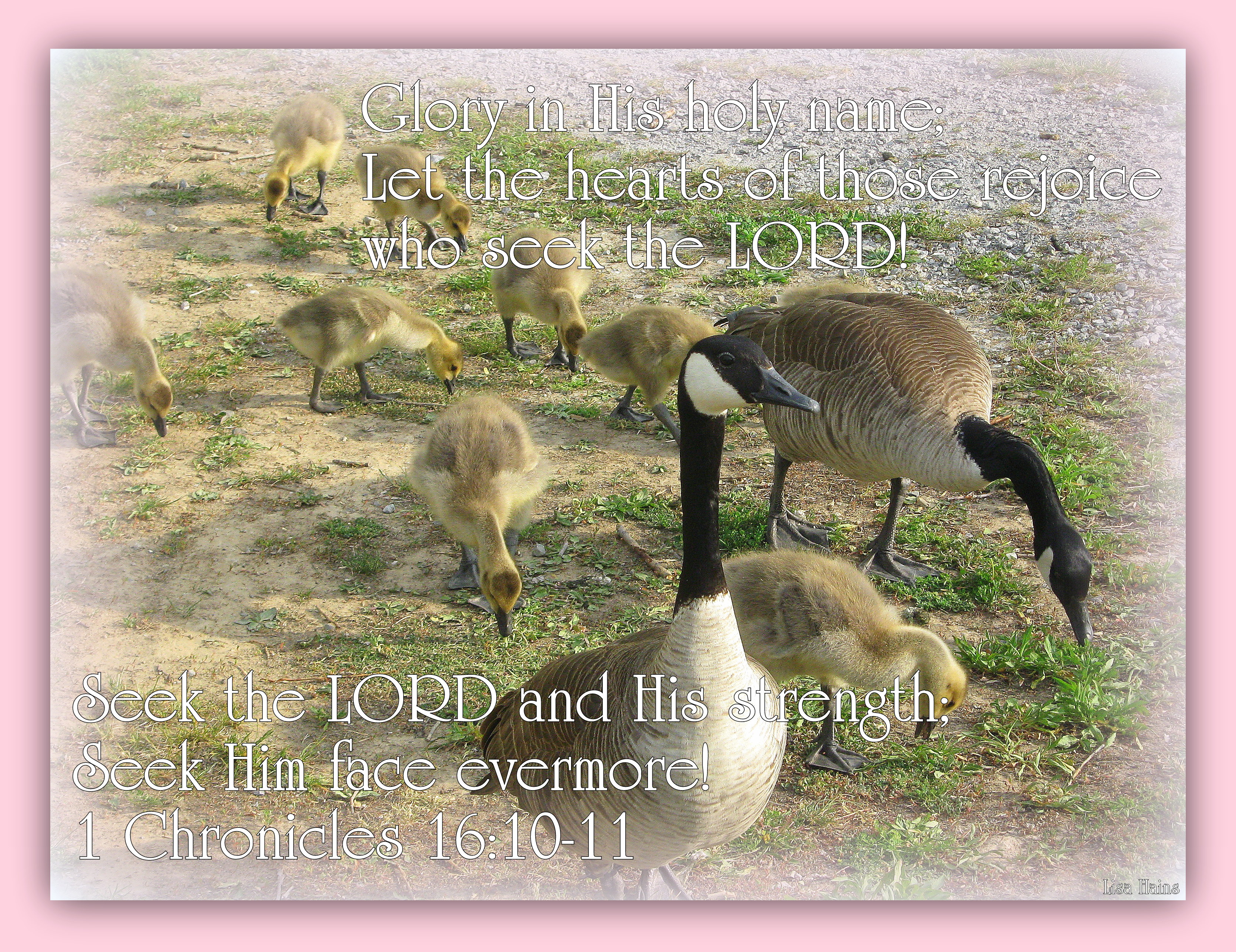 Just as these wee goslings were so intent on finding nourishment and then rest, we too must seek, and seek, then seek some more—to find spiritual truth and nourishment in God’s precious word! He longs to give it!
